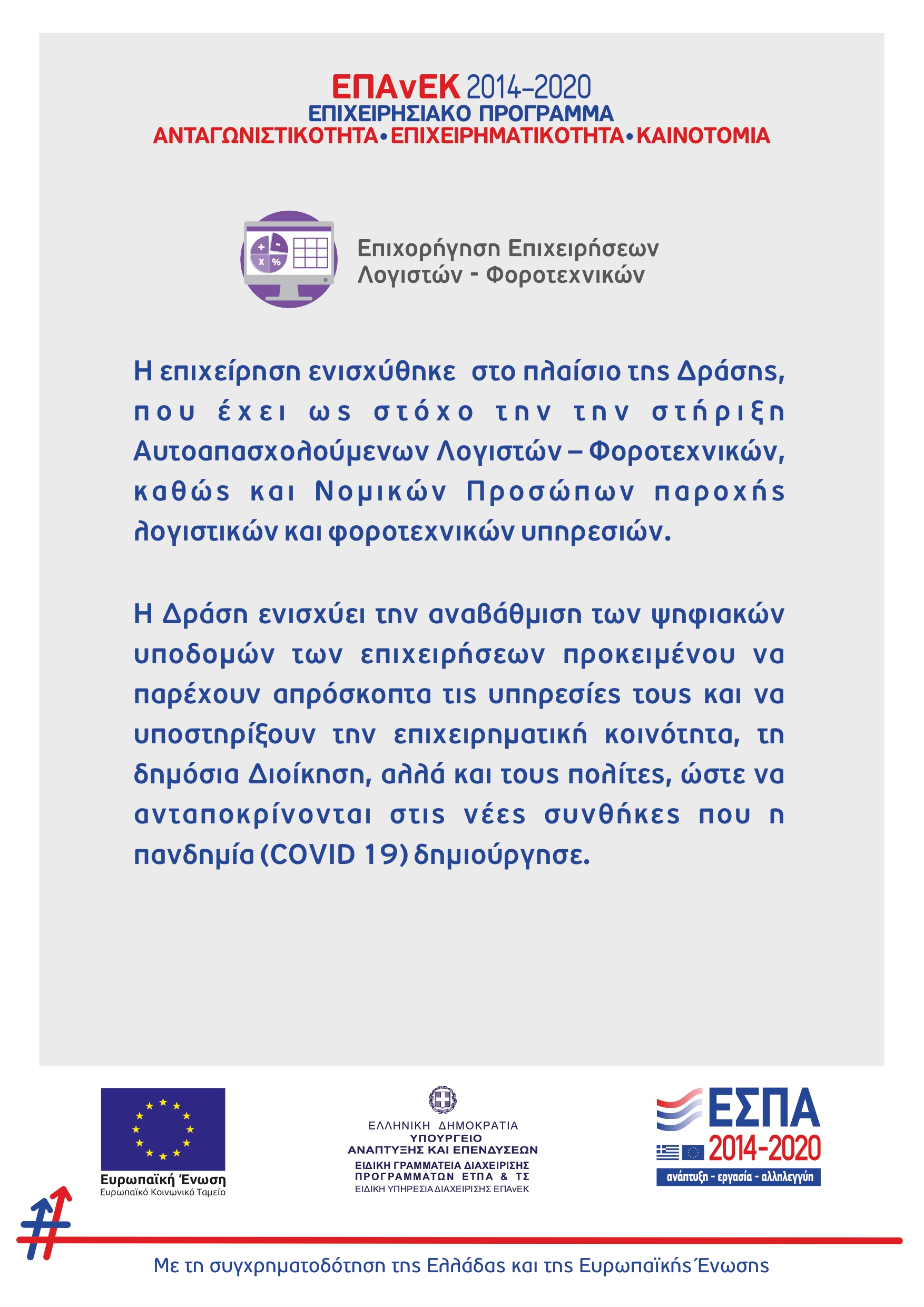 Στόχος μας είναι η καλή εξυπηρέτηση που θα έχετε από εμάς προσαρμοσμένη στις δικές σας ανάγκες, καθώς και να καλύπτουμε αποτελεσματικά κάθε λογιστική και φοροτεχνική ανάγκη σας.